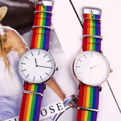 La bandera de la comunitat LGTBI també està inspirada en l’arc de Sant Martí. Es va dissenyar l’any 1978 a San Francisco amb set colors Al 79 se’n va treure un però per motius estètics: quan la posaven als fanals no es veia bé. Va quedar: